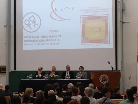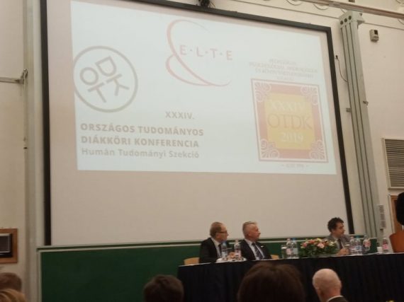 2019. április 24–26. között Budapesten rendezték a XXXIV. OTDK Humán Tudományi Szekcióját az Eötvös Loránd Tudományegyetem Bölcsészettudományi Karán. A rendezvényt Borhy László, az egyetem rektora, Szendrő Péter, az Országos Tudományos Diákköri Tanács elnöke, Demetrovics Zsolt, az ELTE Pedagógiai és Pszichológiai Karának dékánja, Sonkoly Gábor, a Bölcsészettudományi Kar dékánja, Gáspár Mihály, a OTDT Pedagógiai, Pszichológiai, Andragógiai és Könyvtártudományi Szakmai Bizottságának elnöke, valamint Borsodi Csaba, az OTDT Humán Tudományi Szakmai Bizottságának elnöke nyitotta meg. Plenáris előadást tartott Nádasdy Ádám, az ELTE Bölcsészettudományi Kara Angol Nyelvészeti Tanszékének professor emeritusa Miért finnugor nyelv a magyar? címmel. Intézetünket, és egyben karunkat két hallgatónk képviselte, akik a 2018-as révkomáromi Felvidéki Tudományos Diákköri Konferencián vívták ki részvételüket a rangos tudományos rendezvényre sikeresen megvédett és bemutatott dolgozataikkal. A budapesti országos rendezvényen 13 tagozatban zajlottak a hallgatói előadások. Csobády Csilla a Névtan, frazeológia, stilisztika, textológia tagozatban mutatta be Jablonca és Szilice névszemiotikai tájképe című dolgozatát. A szekció elnöke Hegedűs Attila, a PPKE BTK egyetemi docense volt, a bizottsága tagjai pedig Bárth M. János, az ELTE BTK egyetemi tanársegédje, Kárpáti Eszter, a Pécsi Tudományegyetem egyetemi adjunktusa és Póczos Rita, a Debreceni Egyetem Bölcsészettudományi Karának egyetemi adjunktusa voltak. Másik hallgatónk, Radics Rudolf a Populáris irodalom és kultúra szekcióban mutatta be dolgozatát Gasztronómiai motívumok vizsgálata Csaba László: Szindbád, a detektív című regényében címmel. A szekció elnöke Almási Zsolt volt, a PPKE BTK egyetemi docense, a bizottság tagjai pedig Lénárt Tamás, az ELTE BTK egyetemi adjunktusa, Mészáros Márton a KRE BTK egyetemi adjunktusa, valamint Török Ervin, a SZTE BTK egyetemi adjunktusa. A konferencia eredményhirdetésére és a díjkiosztóra 2019. április 26-án került sor az ELTE BTK Gólyavárában. A Roska Tamás emlékelőadást Huszthy Bálint, a PPKE Bölcsészet-és Társadalomtudományi Kar doktorjelöltje tartotta Hogy bizonyítsuk valamiről, hogy nem úgy van, ahogy eddig hitték? Az olasz nyelv esete a zöngésségi hasonulással címmel. A Szekció stafétáját Illésné Kovács Mária, a Miskolci Egyetem Bölcsészettudományi Karának dékánja és Horváth Emőke, a KTDT elnöke vette a XXXV. OTDK Humán Tudományi Szekció rendezőintézménye képviseletében.