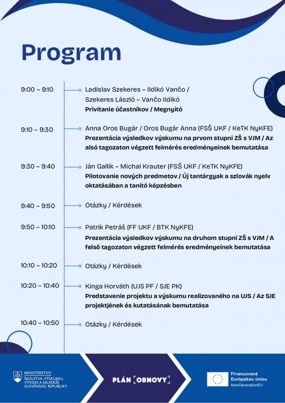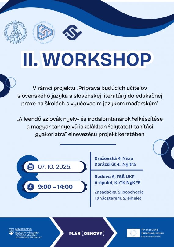 „A leendő szlovák nyelv- és irodalomtanárok felkészítése a magyar tannyelvű iskolákban folytatott tanítási gyakorlatra” elnevezésű projekt- 2. workshop
